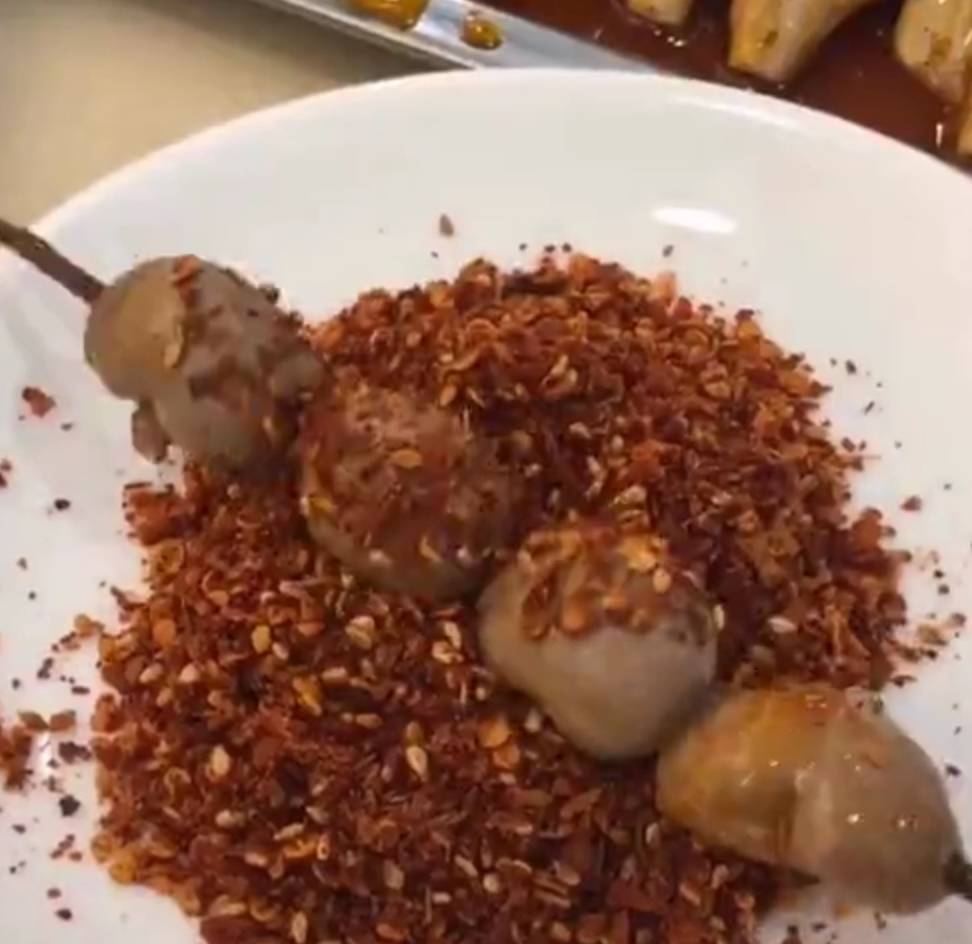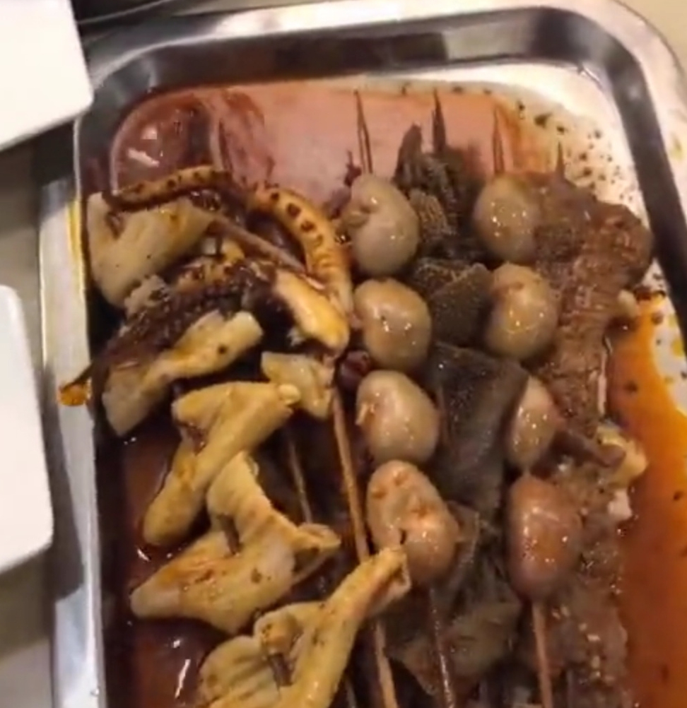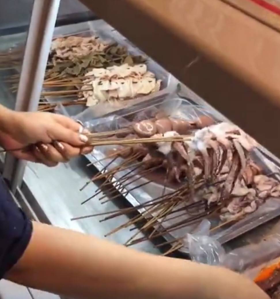 门口排队的人超级多,店面也不是特别的大。一进门有一个巨大的冰箱,可以从里面选很多的串串,老板会亲自帮你煮好。我特别喜欢这些串串的味道,因为它们卤得恰到好处,再配上着家饭店的特制干碟,简直美味到了极致。