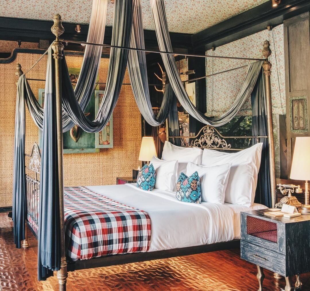 总共是22间单卧室帐篷别墅+1间双卧帐篷别墅,单卧室帐篷面积都在173平,带露台和泳池,每件帐篷都有自己的风格和名字。酒店一共有五种房型:梯田、热带雨林、滨河溪谷、双卧室,非常特别。房间里的布置还原了十九世纪的欧洲风情,复古景致迷人和别墅外的原始景象形成鲜明反差。23座帐篷️拥有100个工作人员,2:1的配比让你时刻感受热情的服务。
