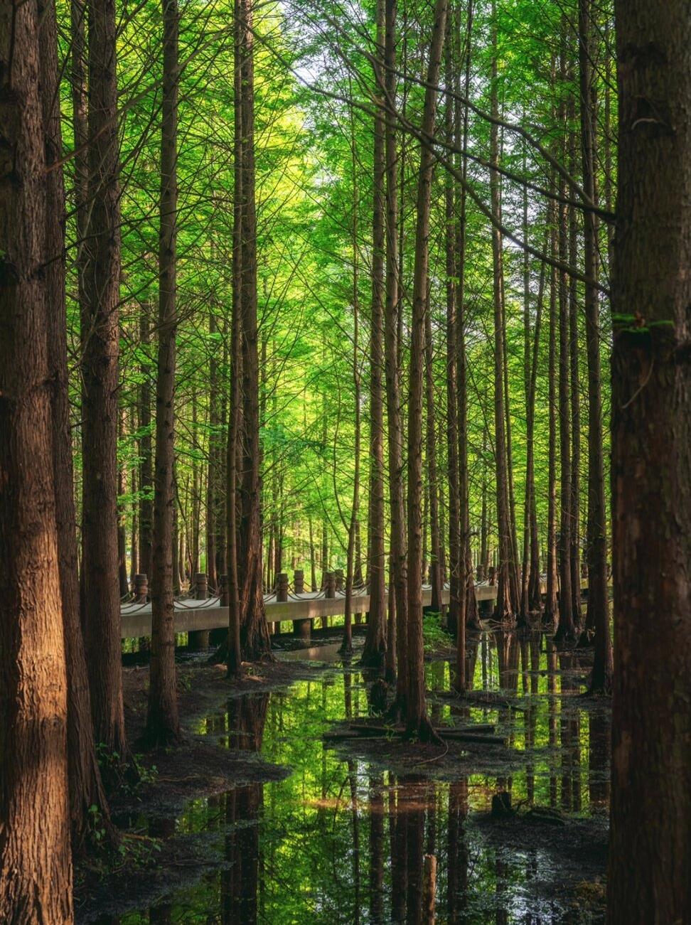 成都周边隐藏着一片醉人的水上森林,太神奇了!桤木河湿地公园位于成都市崇州市龙兴镇光华大道。距成都市中心仅一小时车程,交通便捷。这座广阔的森林和湿地公园以其郁郁葱葱的绿色植物和缓缓流淌的溪流美景而闻名。无论是炎热的夏季,还是漫长的周末,这里都是带家人避暑、戏水的理想场所。遛狗也是不错的选择。