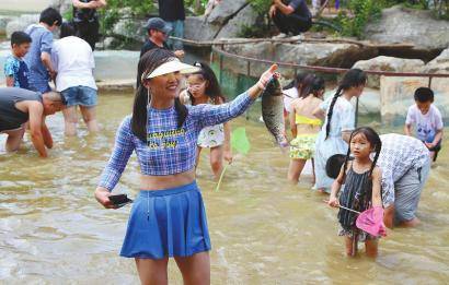 7月1日,济南跑马岭·森林戏水节热闹开场。浑水摸鱼、戏水鱼塘、枫林溪沙滩、游船码头等丰富多彩的戏水狂欢项目,给市民游客带来清凉一“夏”。今年暑期,跑马岭森林游项目全新升级,倾力打造出2000平方米的“戏水鱼塘”。在这片神秘的森林水域里,摸鱼、抓虾、捉泥鳅、水滑梯、海洋球、水枪大战、泼水狂欢等众多夏日森林戏水项目纷纷登场。大小同乐,释放天性,尽情玩水、戏水、泼水,让市民游客感受夏日的凉爽,度过一个难忘的26℃水世界。这里不仅有戏水节,还有沉浸式亲子游乐项目等您来畅玩,在森林动物城内与百余种萌宠亲密接触,在酷玩越野区内感受森林里的速度与激情,在无动力冒险塆乐享亲子美好时光,在逃离侏罗纪公园与百余条远古“活”恐龙近距离邂逅。清凉与狂欢同在,森林部落给您和家人一个清凉的夏日亲子美好时光。(本报记者吕传泉通讯员孙燕摄)