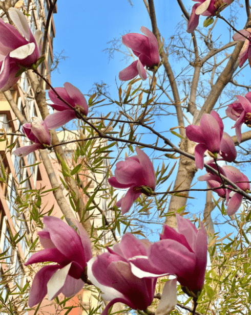 在树村郊野公园,则是黄澄澄的。这里大片的连翘花沿路设置,将市民遛弯儿、健身的道路装扮成一条浪漫的花路。中午时分,不少在附近上班的市民在这里边赏花边锻炼,一举两得。除了成片的连翘,玉兰、西府海棠、榆叶梅、紫叶李等京城经典春花在这里也一样不少,白的、粉的、紫的……正争奇斗艳地开着,走着走着就能遇见“小惊喜”,让人忍不住驻足拍下几张照片。
