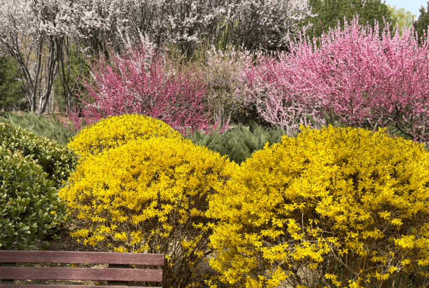 观赏海棠、玉兰、连翘、榆叶梅等: