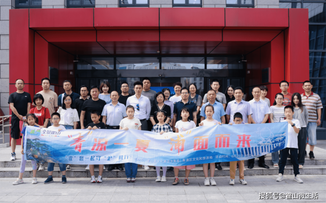 “青”凉一夏“浦”面而来“霍”您一起守“沪”同行!线下体验游活动授旗仪式在现场举行。来自青浦区的10组家庭及媒体朋友们从霍山县文化馆出发,沿着体验游路线探寻山水之美、生态之美、人文之美、美食之美。