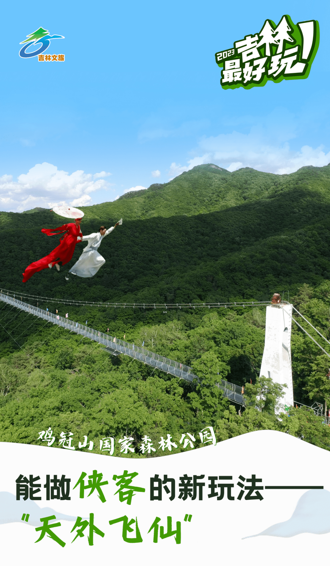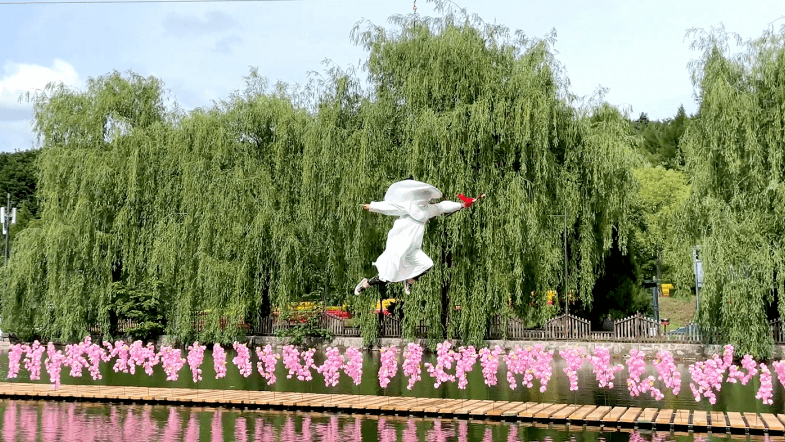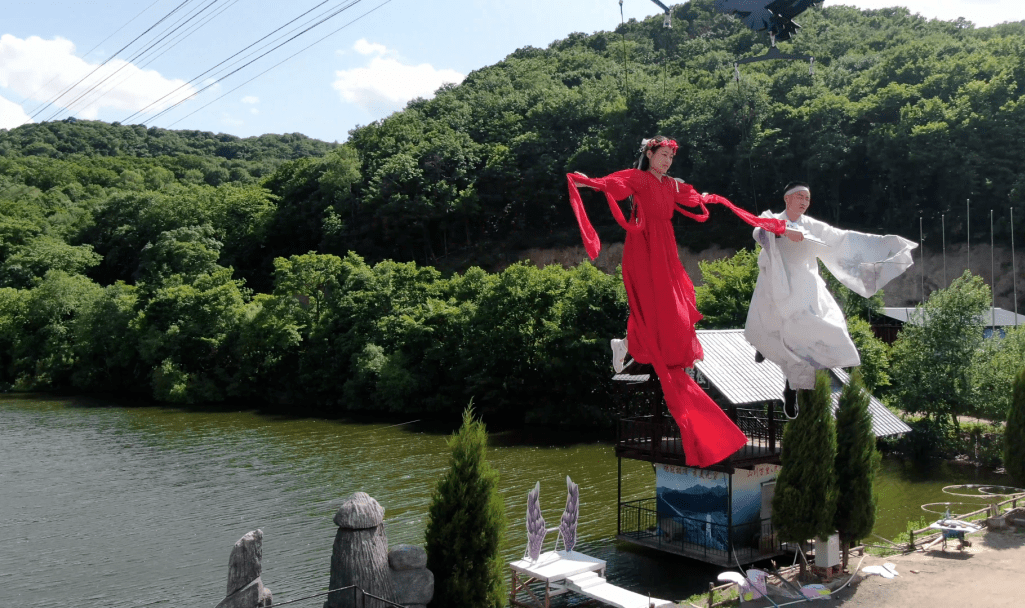 天外飞仙:吉林省唯一的威亚项目,具有独特的体验方式,游客可穿着景区提供的汉服,拿上长剑腾空飞行于湖面,神话中的御剑飞行、凌波微步等场景都可以在这里实现,圆每一位游客的 武侠梦 。