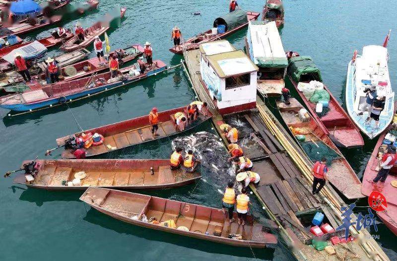 上午9时50分,万绿湖湖畔岸边发令声响起,开渔活动正式启动。由50艘渔船组成的船队“齐刷刷”乘着白色浪花驶回码头,用丰收的渔获喜迎开渔活动的到来。在船上的渔民慢慢拉起湖中的渔网,万千肥美的湖鱼在网中跳跃。来自全国各地的数千名宾客齐聚万绿湖,共同见证分享渔民丰收的喜悦,共赴东源文旅融合发展盛宴。