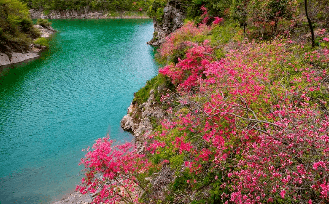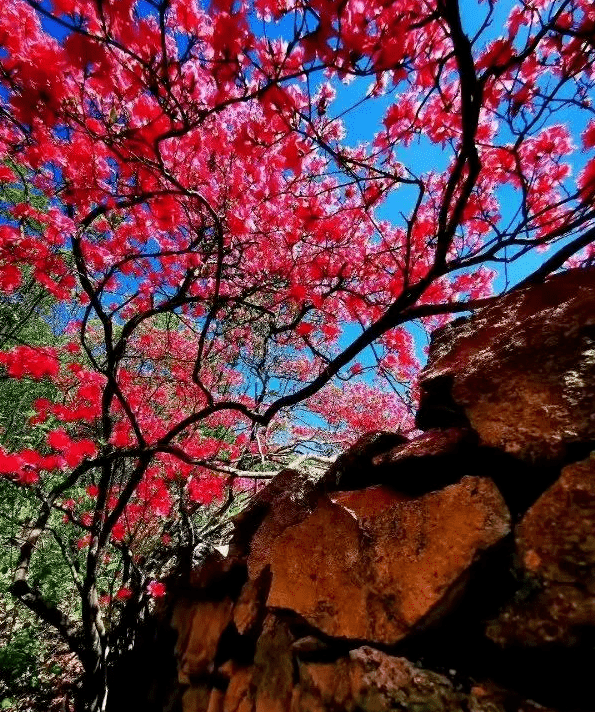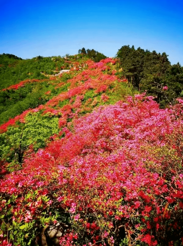 如果你想看映山红争奇斗艳、恢弘壮丽的场景,那就到马鬃岭景区吧。 马鬃岭位于六安市金寨县,为国家AAA级旅游景区,是一块原始、古老、完美的绿色宝库。四月下旬,位于天马自然保护区的马鬃岭变得如诗如画。山上映山红竞相绽放,飞瀑流泉,如人间仙境。