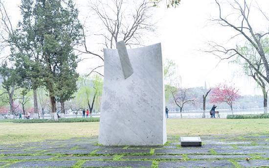 雕塑《砌》位于孤山东麓草坪。作品由大理石制成,把马的形体空间与外轮廓空间结合在一起,流动自然的生命体与简洁平直的几何体形成对比,营造一种沉静、凝重、悠远的意境。