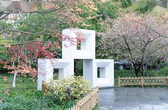 雕塑《云中的正方体》位于清雪庐前草坪。作品由大理石制成,在虚与实、粗犷与细腻、理性与感性的打造中,与西子湖朦胧而飘逸、温情而浪漫的自然与人文环境构成和谐。