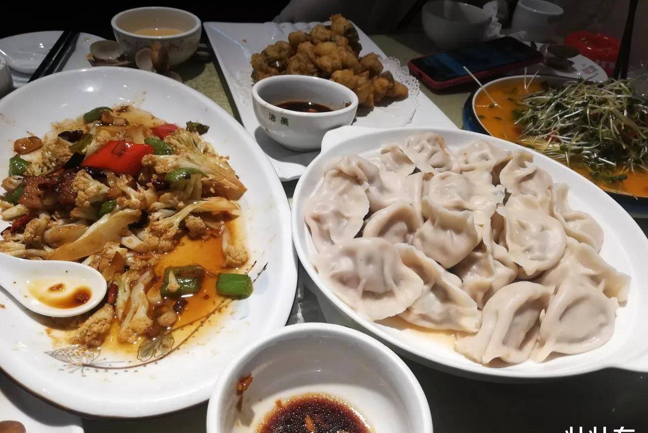 到山东出差,感觉山东半岛物价真不便宜,堪比北上广了!随便找个餐馆吃饭,没有便宜的东西,这是烟台某饭店,一盘三鲜饺子29元,一盘20个,真心不好吃,肉片炒花菜29元,一盘子也就四五片小肉片,炸蛎黄48元,辣炒蛤29,没有便宜的东西,关键不好吃。应该是没有找到好吃的鲁菜馆!在杭州吃个辣炒蛤才19元,量也很大,农家小炒肉才25元,很多菜比胶东便宜,真是没有对比就没有伤害!感觉在山东吃饭便宜的地方就是临沂,聊城,德州了。在临沂一盘饺子十多元,一盘炒鸡20左右,炒个素菜十元八元的。