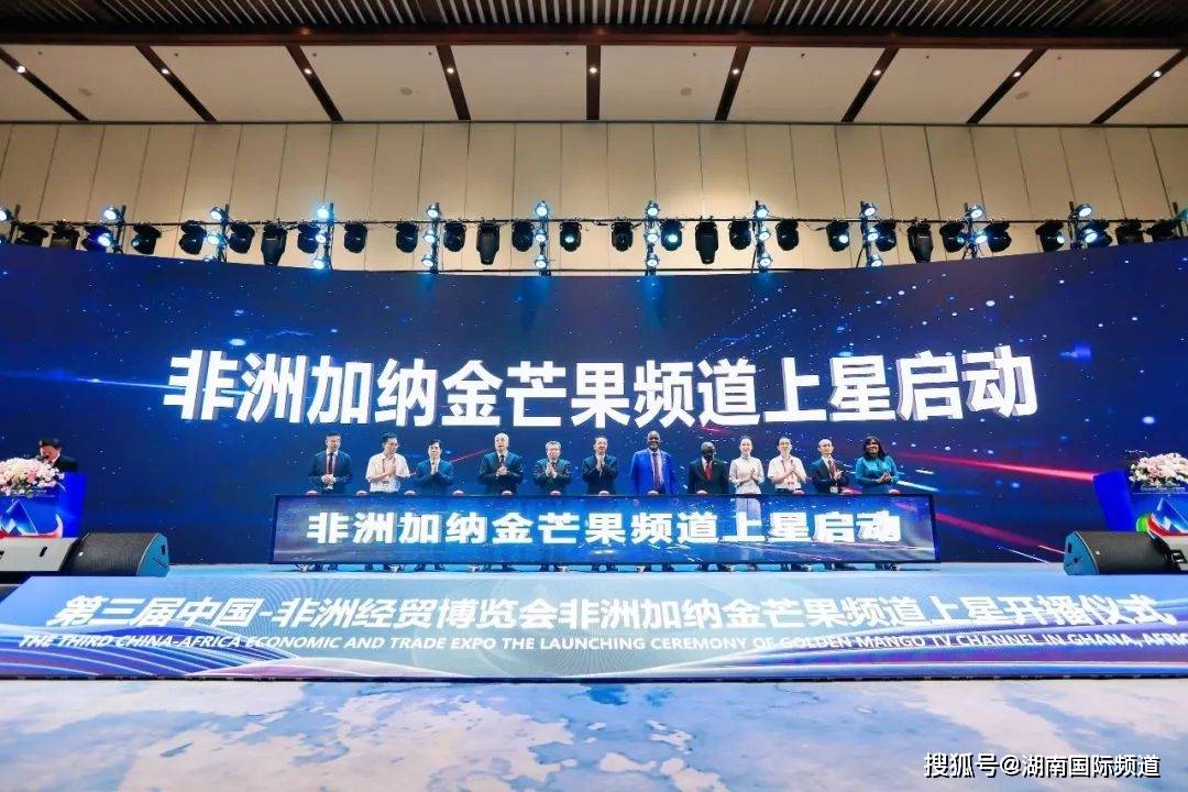 6月30日,由湖南省广播电视局、湖南广播影视集团主办,湖南国际频道、加纳黄金数字电视台承办的第三届中非经贸博览会非洲加纳金芒果频道上星开播仪式在长沙举行,将打造在加纳叫得响、在西非有鲜明特色、受广大年轻人追捧的电视频道,成为中非文化、经贸交流的桥头堡。湖南省委常委、省委宣传部部长杨浩东出席并致辞,博茨瓦纳农业部部长菲德力斯·莫劳,埃塞俄比亚妇女与社会事务部部长埃尔戈格·特斯法耶,加纳国家资产管理局局长爱德华·阿夸西·博阿滕,加纳驻华使馆大使温弗雷德·哈蒙德等非洲多国政府官员及驻华使节代表出席,湖南省委宣传部副部长、湖南省广播电视局党组书记、局长贺辉主持开播仪式,湖南广播影视集团有限公司(湖南广播电视台)党委副书记、总经理、台长、总编辑龚政文致欢迎辞。