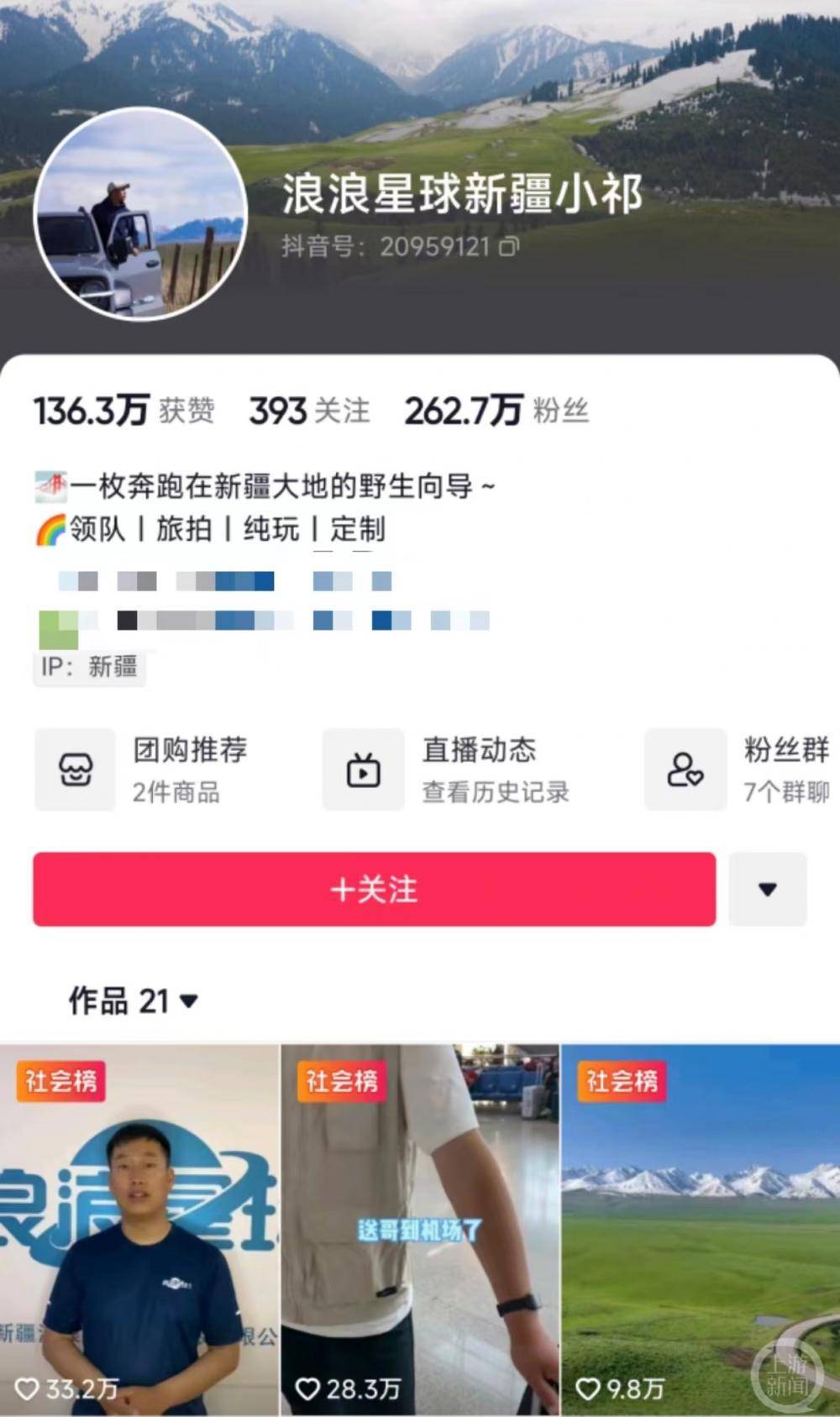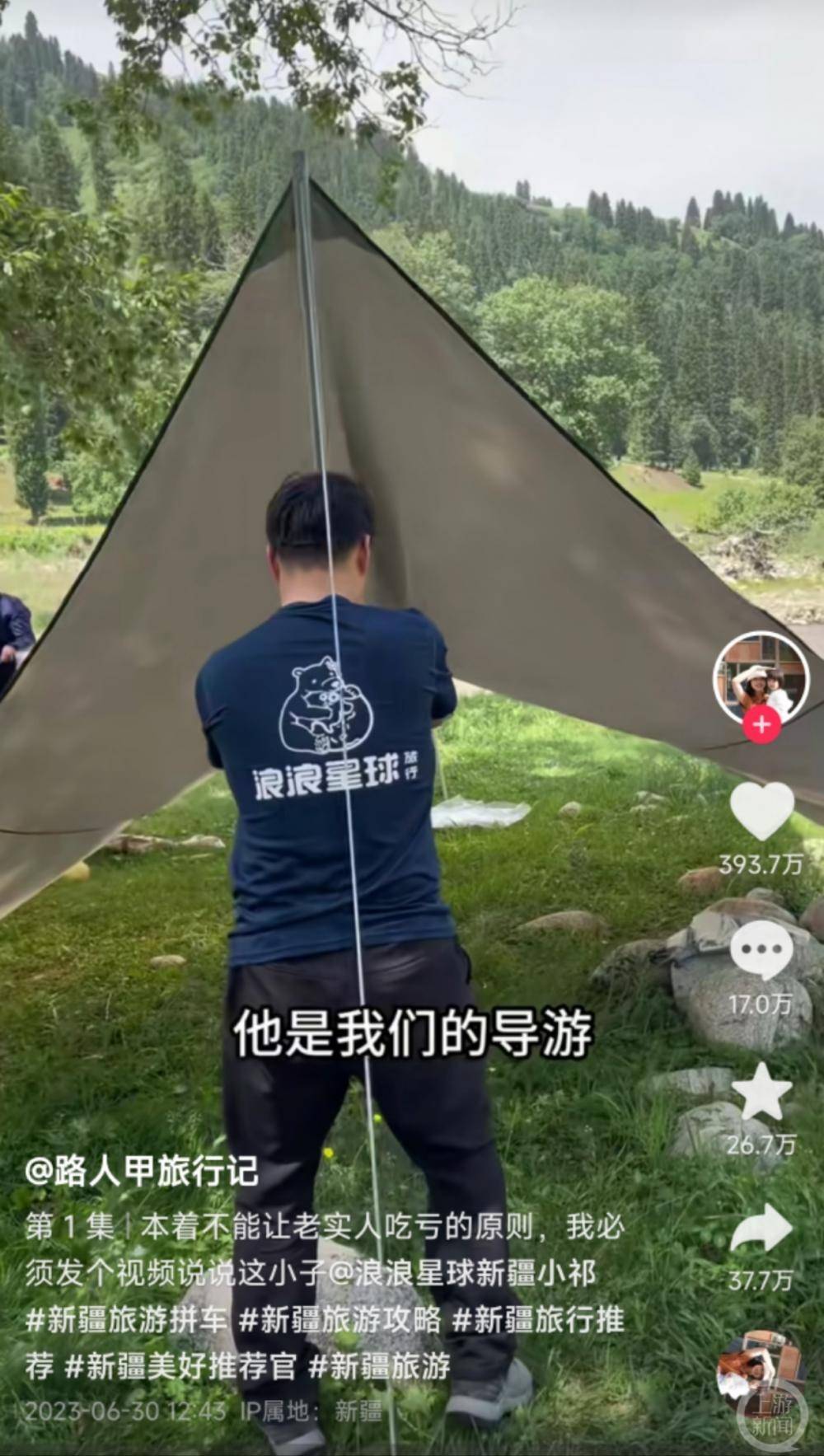 “路人甲旅行记”告诉上游新闻记者,自己一家人去新疆旅游,因为有孩子就报了个定制团,“路线都是根据我的要求定制的,老弟(小祁)就是我们导游,又是东北老乡,又比我小好几岁,看他那么认真,那么勤快,就想着能帮他介绍点客人,让他多挣点钱,我在网上也有一点粉丝,我就给他拍了个视频,目的是表扬他,想让这么好的导游可以被更多人看见。”