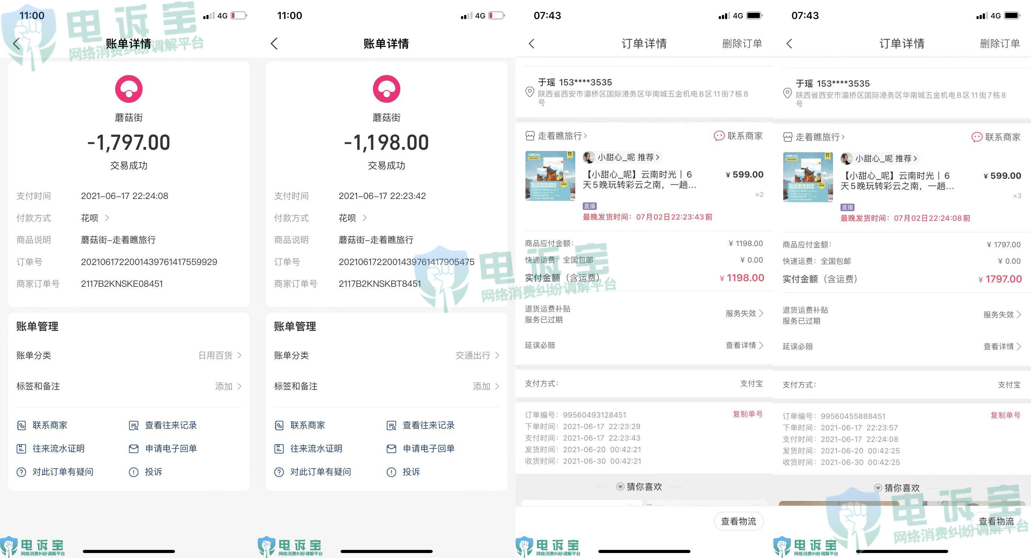 6月25日,陕西省的于女士向“电诉宝”投诉称,她于2021年6月17日,在蘑菇街电商平台,小甜心直播间购买走着瞧旅行社的“云南时光6天5晚玩转彩云之南”团购票。现在期限已满,却不及时退费问题,造成她的财产损害。