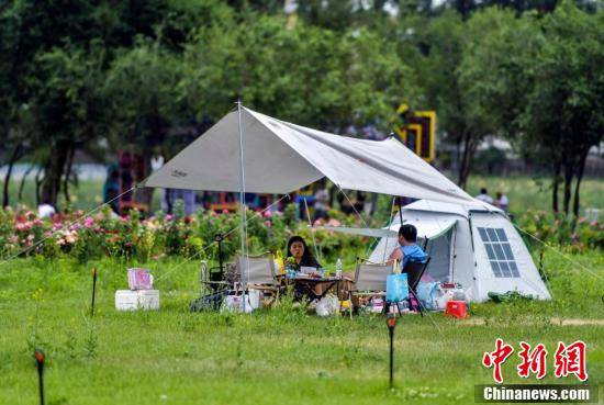 市民在大自然中享受露营乐趣。刘新 摄