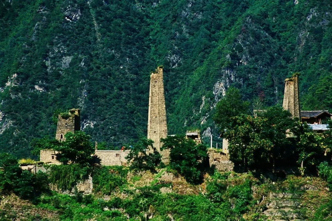 高山峡谷中的传统羌寨