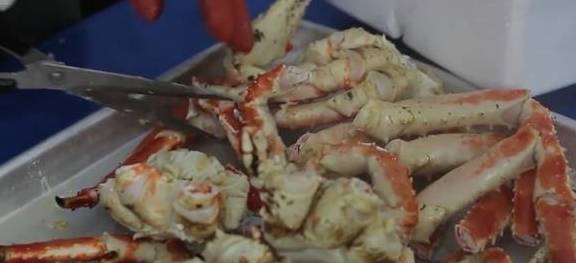 把帝王蟹脚上的壳子剪开,这样我们在吃帝王蟹的时候,剥起帝王蟹壳子来就容易得多了!