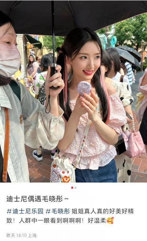 毛晓彤又去迪士尼啦!6月21日,有多名网友在社交平台发文,在上海迪士尼乐园遇到了毛晓彤,并分享了与她的合影。