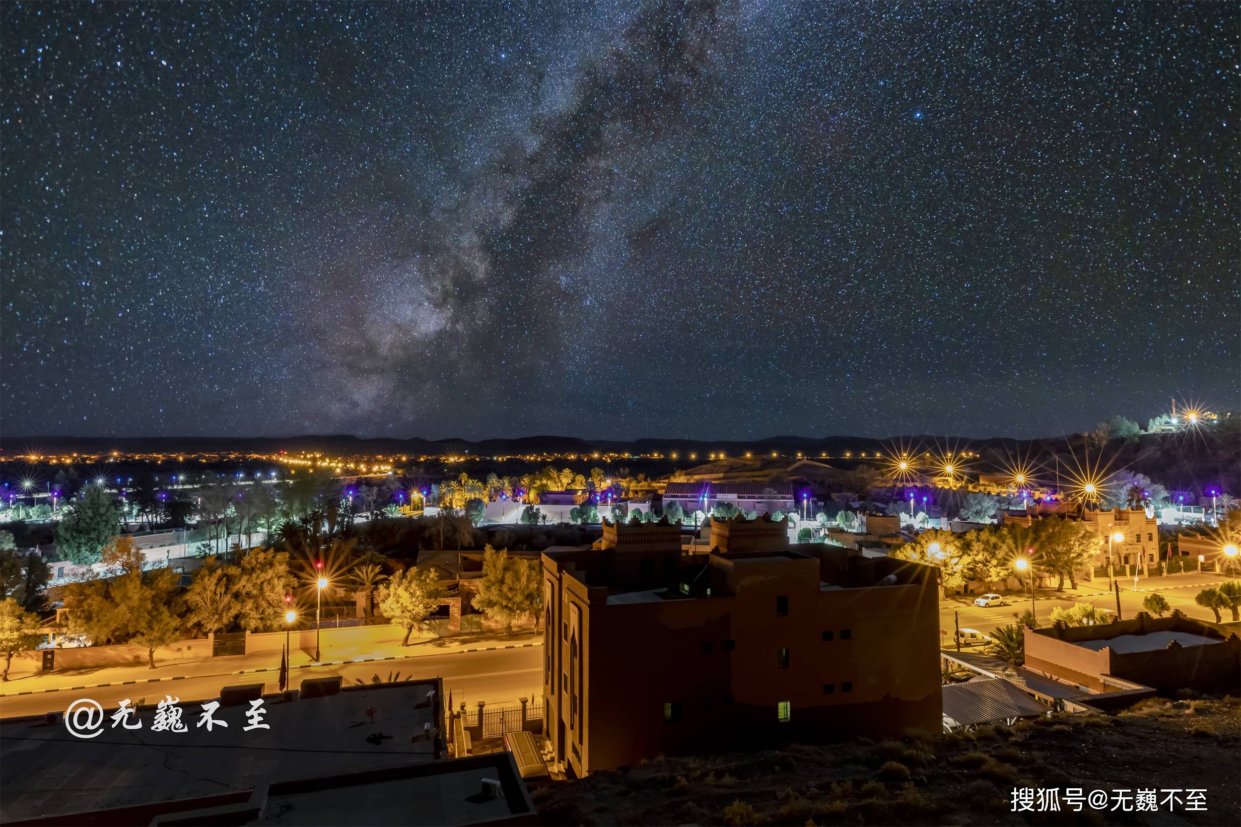 夜半,窗外仍是灯火辉煌,干脆走到露台,瘫倒在躺椅上静静欣赏瓦尔扎扎特的迷人夜色。淡淡的星河蹦出一滴流星泪,在月色压迫下黯然退场,点点街灯则在小光圈长曝光中迸散出耀眼的星芒!