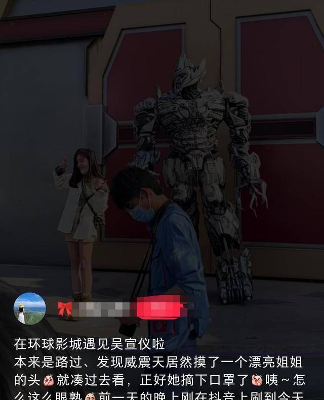 偶遇的网友不仅分享了吴宣仪与威震天拍照过程的视频,还分享她自己拍摄的吴宣仪,网友还透露都是原相机拍摄,照片中吴宣仪又白又瘦,一双大长腿真让人羡慕极了。