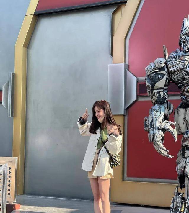从视频中可以看出来,吴宣仪正站在威震天前面合影,身穿白色衬衫棕色短裙,再配上马丁靴,妥妥的女团穿搭,而且内搭吊带,拍照的时候还刻意露出香肩凹造型,真不愧是女明星很会摆造型。