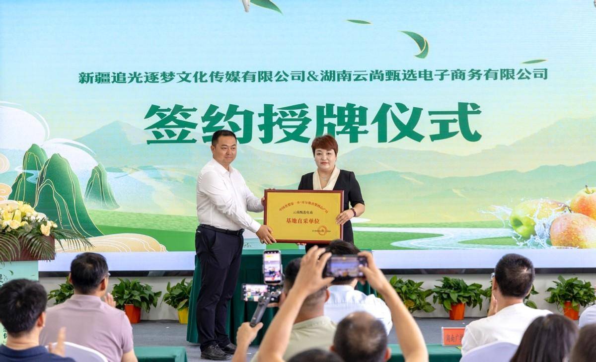 现场物流、电商企业代表签订了战略合作协议,阿瓦提乡领导为云尚甄选代表授予“基地直采单位”牌匾。云尚甄选一直致力于湖南消费帮扶领域,通过公域+私域流量互通,创立了独有的市场化运作的销售模式,为大力推动阿瓦提乡香梨产业发展,将在香梨批发、集采、零售、定制等方面多向发力,打通线上销售渠道,一起助推库尔勒市的乡村振兴。