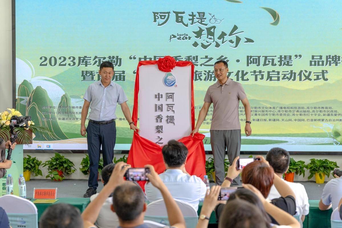 活动现场,由市领导为“中国香梨之乡·阿瓦提”揭牌。阿瓦提作为库尔勒香梨核心产区,香梨种植面积8.6万余亩,年产量近15万吨。阿瓦提香梨由于含糖量高、肉质更细、口感更好等优点,每年一到香梨成熟的季节,就吸引大批批发商前来采购。