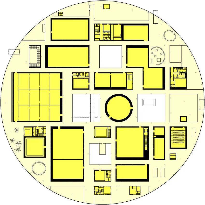 如果我们仔细比对可以看到其他方面的类似,关于圆形的使用,金泽美术馆是因为场地被三条街道包围,可从多个方向进入,圆形平面由此而生,任何人都可以从任何入口进入博物馆,有助于促进建筑与城市之间的亲近感。而MVRDV表示圆形来源于甲方的想法。