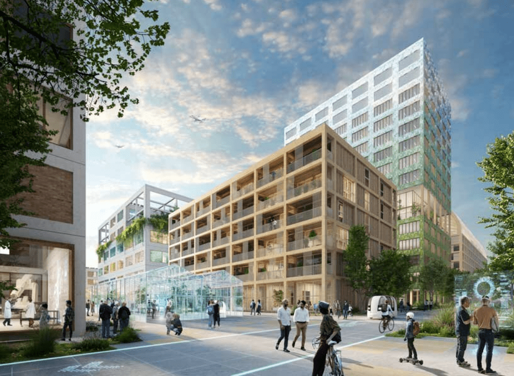 项目遵循生物气候战略,采用节能建筑,最大限度地减少校园运营所需的能源。可再生能源通过风力涡轮机和太阳能电池板在当地收集,并使用电池和地面热库和冷库储存,计划的目标是在其整个生命周期内实现100%的碳中和。