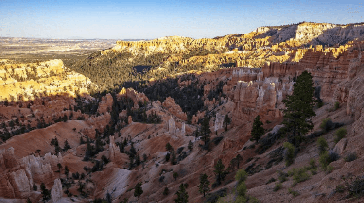 布赖斯峡谷拥有丰富的生态系统多样性和生物适应能力,尽管它位于一个相对干旱和高海拔的地区。植被多样性:布赖斯峡谷的植被类型多样,包括针叶林、混交林、草原和灌木丛等。在高海拔地区,主要的树种包括冷杉、云杉和松树。峡谷内的植物物种数量丰富,适应了不同的海拔、土壤和气候条件。