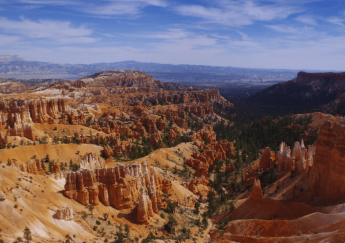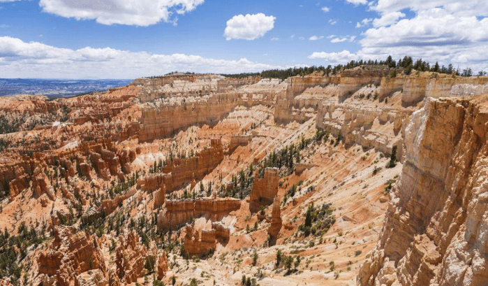 地理位置:布赖斯峡谷属于科罗拉多高原的一部分。它位于盐湖城以南约270公里(约168英里)处,靠近犹他州和亚利桑那州的边界。地质形成:布赖斯峡谷是由数百万年来的侵蚀作用形成的。在峡谷的边缘,岩石形成了独特的尖塔和壮丽的悬崖,被称为“胶状土柱(hoodoos)”。这些地貌是由侵蚀作用在岩层中切割出来的。