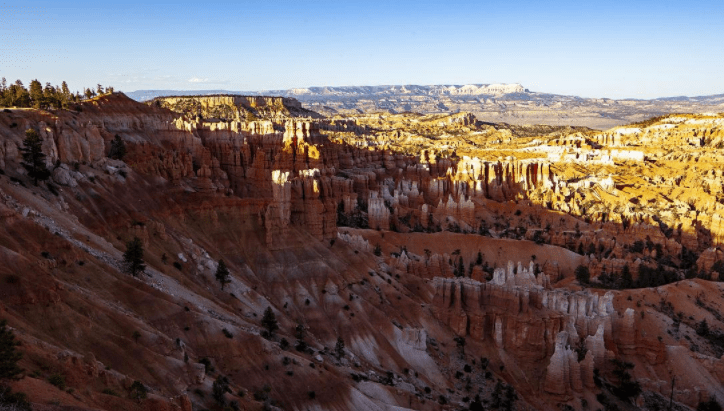 彩色层次(Color Bands):布赖斯峡谷的岩层中常常存在明显的彩色层次。这些彩色层次是由不同岩石类型、岩层的化学成分和氧化作用等因素所导致的。不同岩层的颜色从红色、橙色到白色不一,形成了峡谷内壮观的色彩层次。