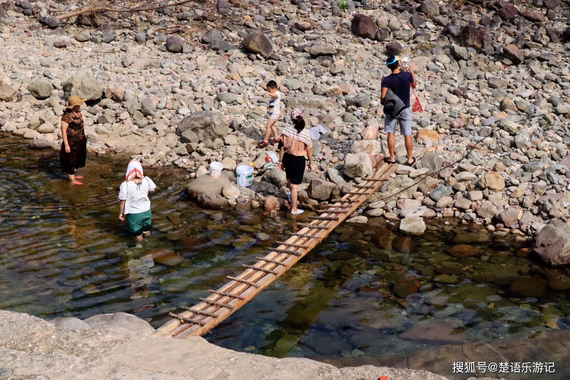葛竹村前的溪段已经不复当年的浩荡,几乎成为断流的浅溪。不过,正是因为处处是浅溪,才让这里成为最美的玩水风景线。葛竹村前的大桥下,溪水似有若无,几处溪坑里的水都很清澈,成为游客乘凉的好去处,周末基本游人如织。