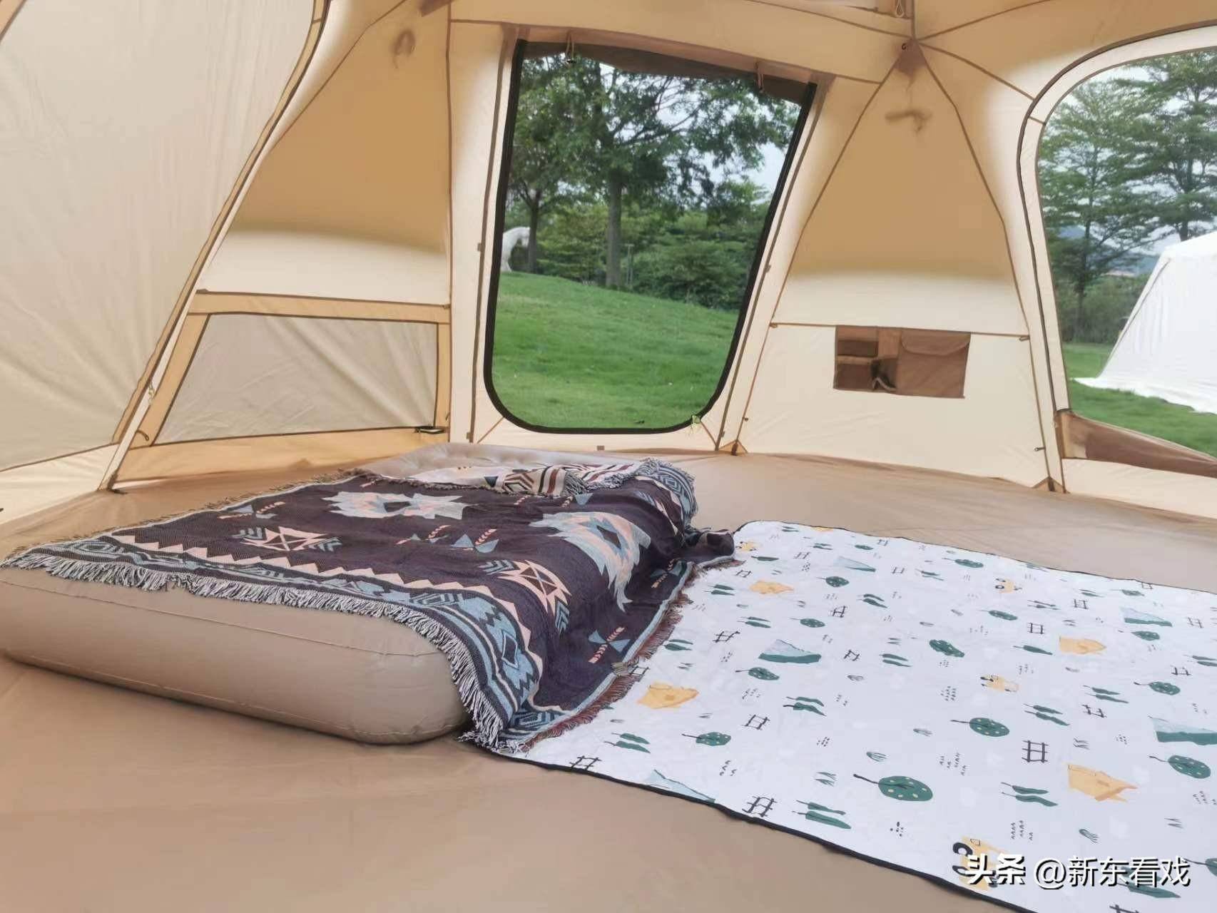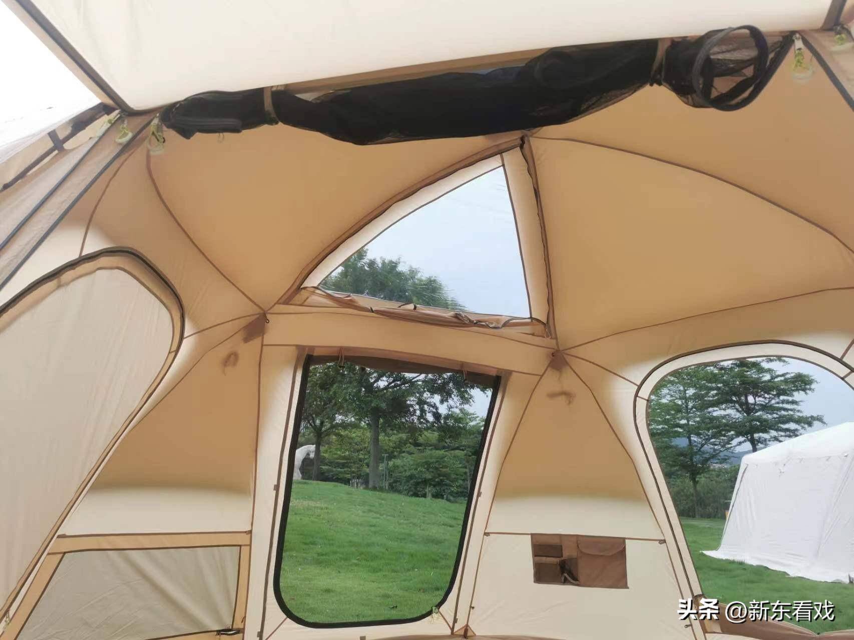 这款帐篷设计有前后门,有四个落地窗和六个通风侧。宽敞的内部空间可容纳十人聚会,顶部设有两扇窗户。不过需要注意的是,窗口的设计有点太高,需要跳起来才能打开,影响用户体验。但一旦打开窗户,就可以透过窗户欣赏美丽的星空。那种感觉绝对是无与伦比的,值得一试。