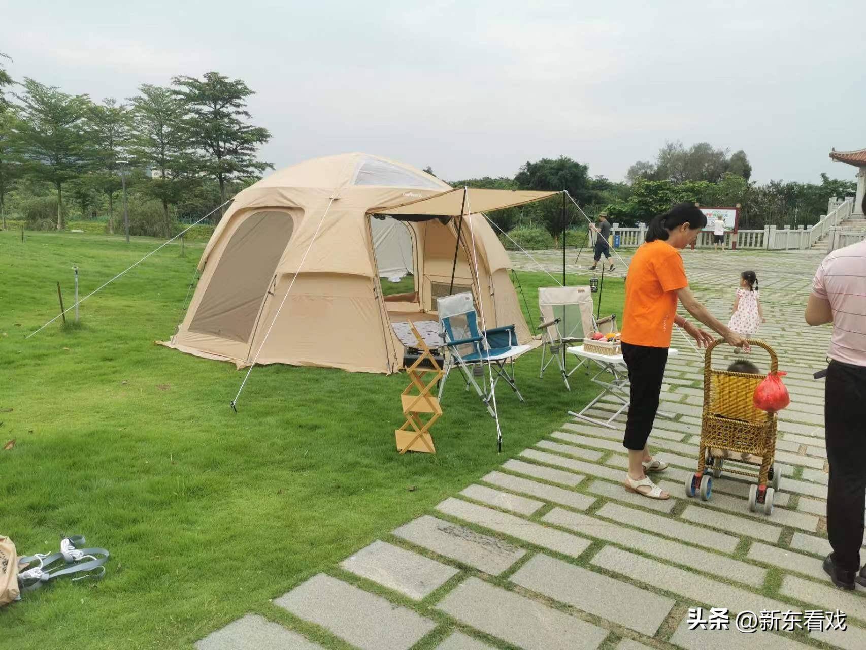 高颜值的帐篷吸引了不少市民前来参观。他们停下来拍照,或者走进帐篷参观,或者坐在椅子上休息。他们也想体验一下这种露营装备带来的享受。