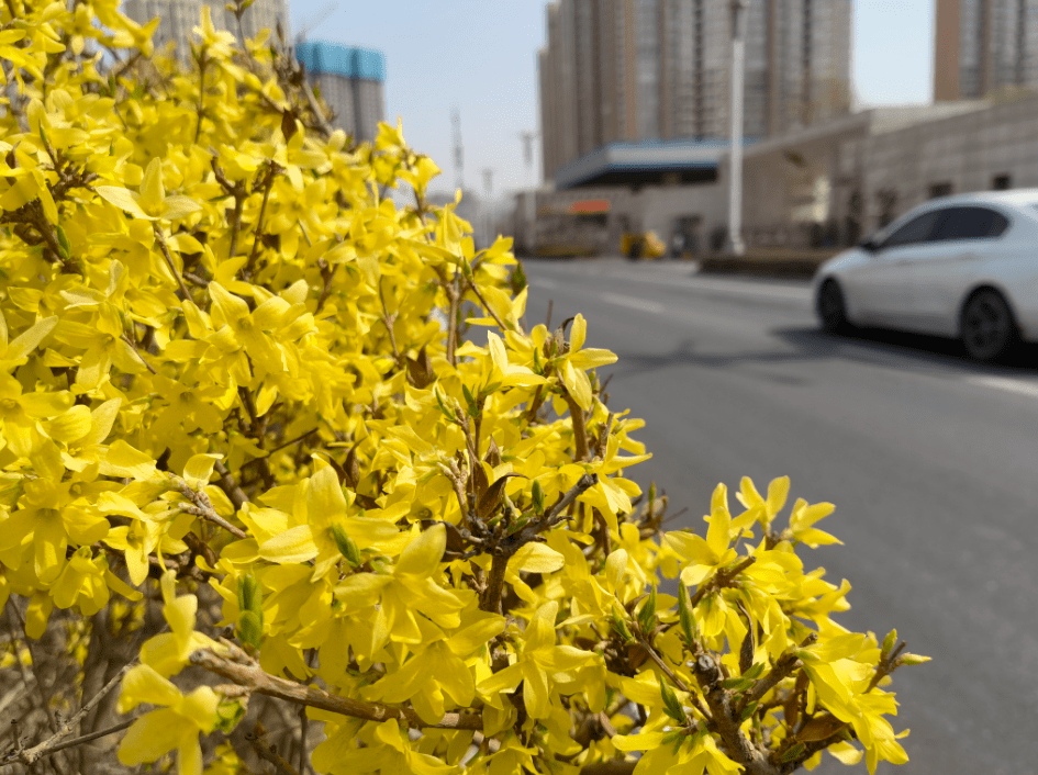 赏花方式:驾车在路上远远望去,艳丽的明黄色,令人心情舒畅。适合远观,也适合游客拍照记录街区春意。
