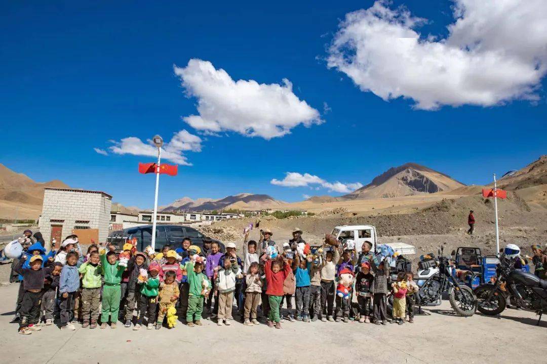 活动现场在村部,孩子们早就聚集在一起等我们的到来。在村长的组织下,小朋友们排队领取。我看着他们收到礼物后开心的样子,连日来高原骑行的艰苦和疲惫都一扫而空。