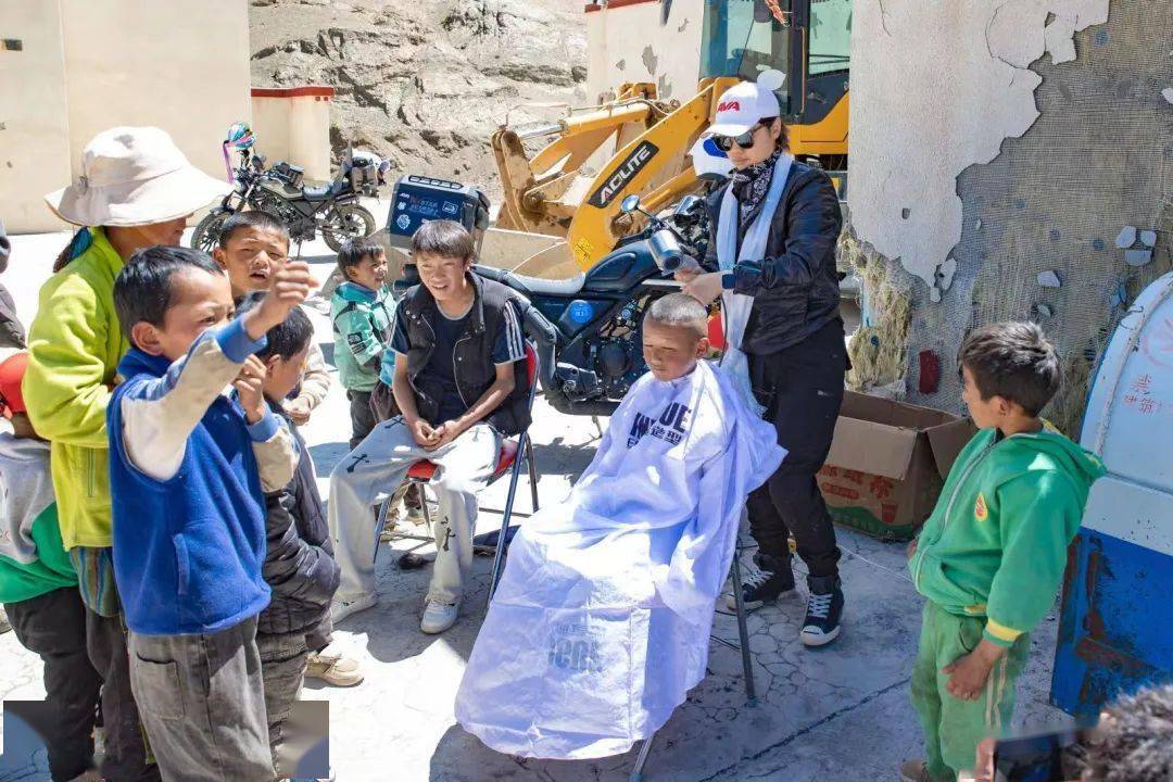 当地地处偏远地区,村民理发要到几十公里外的乡镇上,非常不方便。队友阿诺是一名理发师,这次骑行她特意带上了理发工具现场给藏族小朋友和村民们理发。