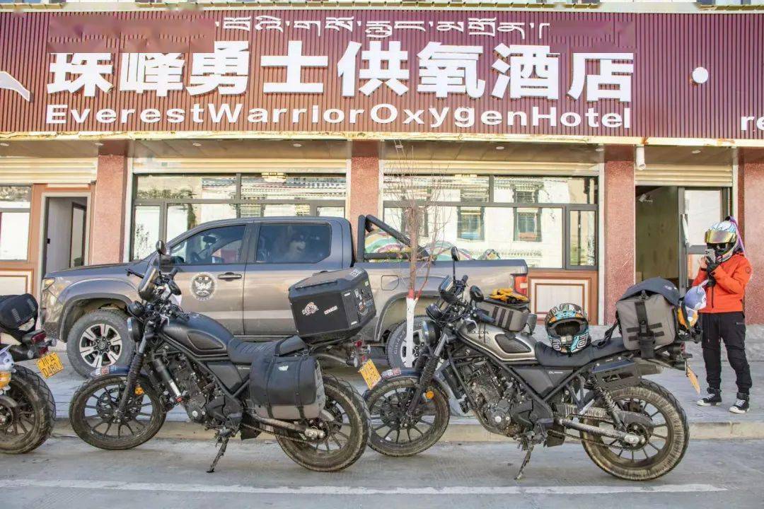 我们本田小队伍有其他任务,第二天我们骑着本田CL300来到了珠峰脚下的一个小村庄一冲嘎村,给当地儿童送去一皮卡车的玩具和物资。