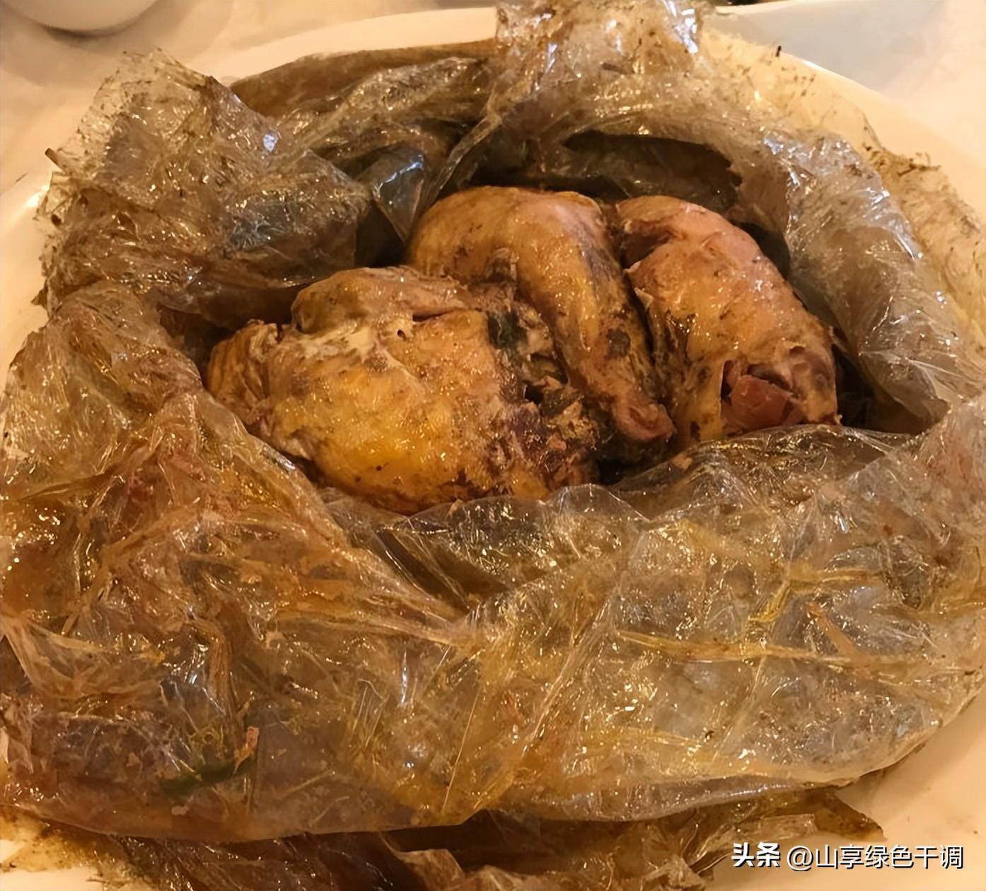 叫化鸡剥去外包装,用筷子一拉骨头就掉了。它很好吃。调料有山奈、白豆蔻、花椒、小茴香、八角、香叶、彩椒,调料有料酒、酱油、盐、葱、蒜、姜、葱、