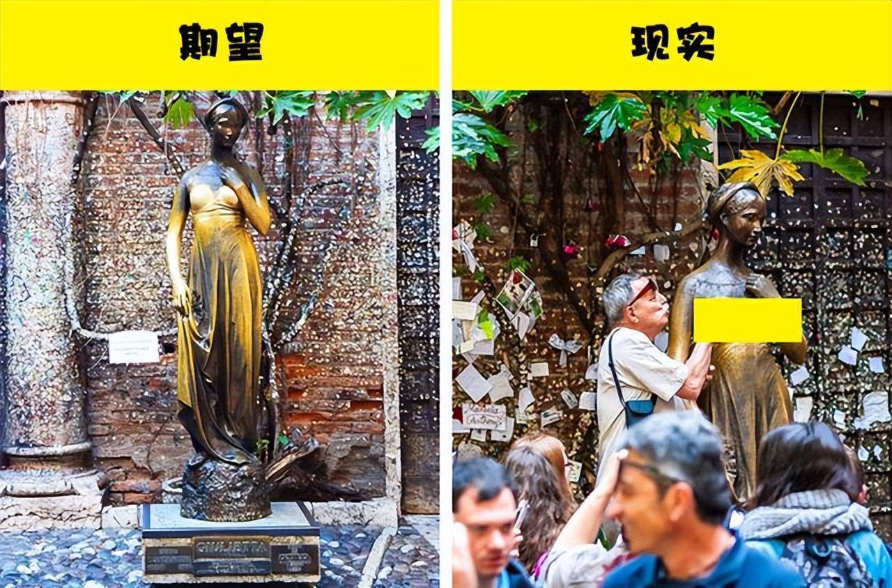 维罗纳自古以来就是一个浪漫而好客的地方。然而,这座城市因朱丽叶的地位而闻名的特殊景点是罗密欧和朱丽叶纪念碑附近,那里经常挤满了游客。据说,触摸朱丽叶身体的某个部位,就能找到真爱。但现实中,游客常常表现得过于激进,抓住朱丽叶的身体,导致雕像的手部和身体出现裂纹和磨损。游客的过度创新也让这个浪漫之地的气氛明显降低,导致这个旅游景点失去了吸引力。
