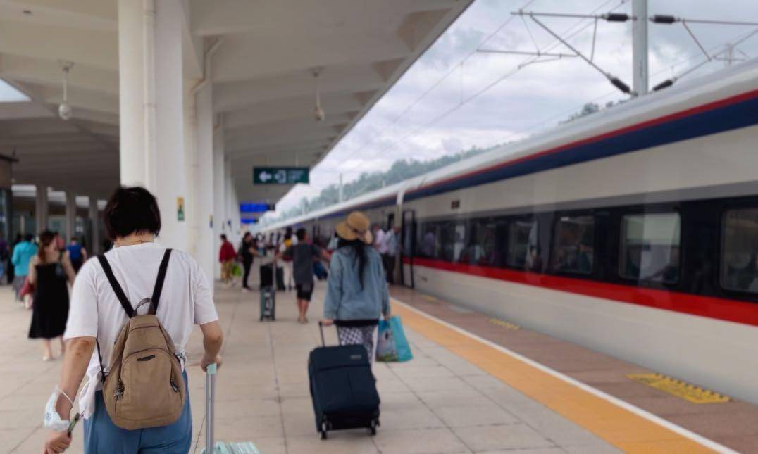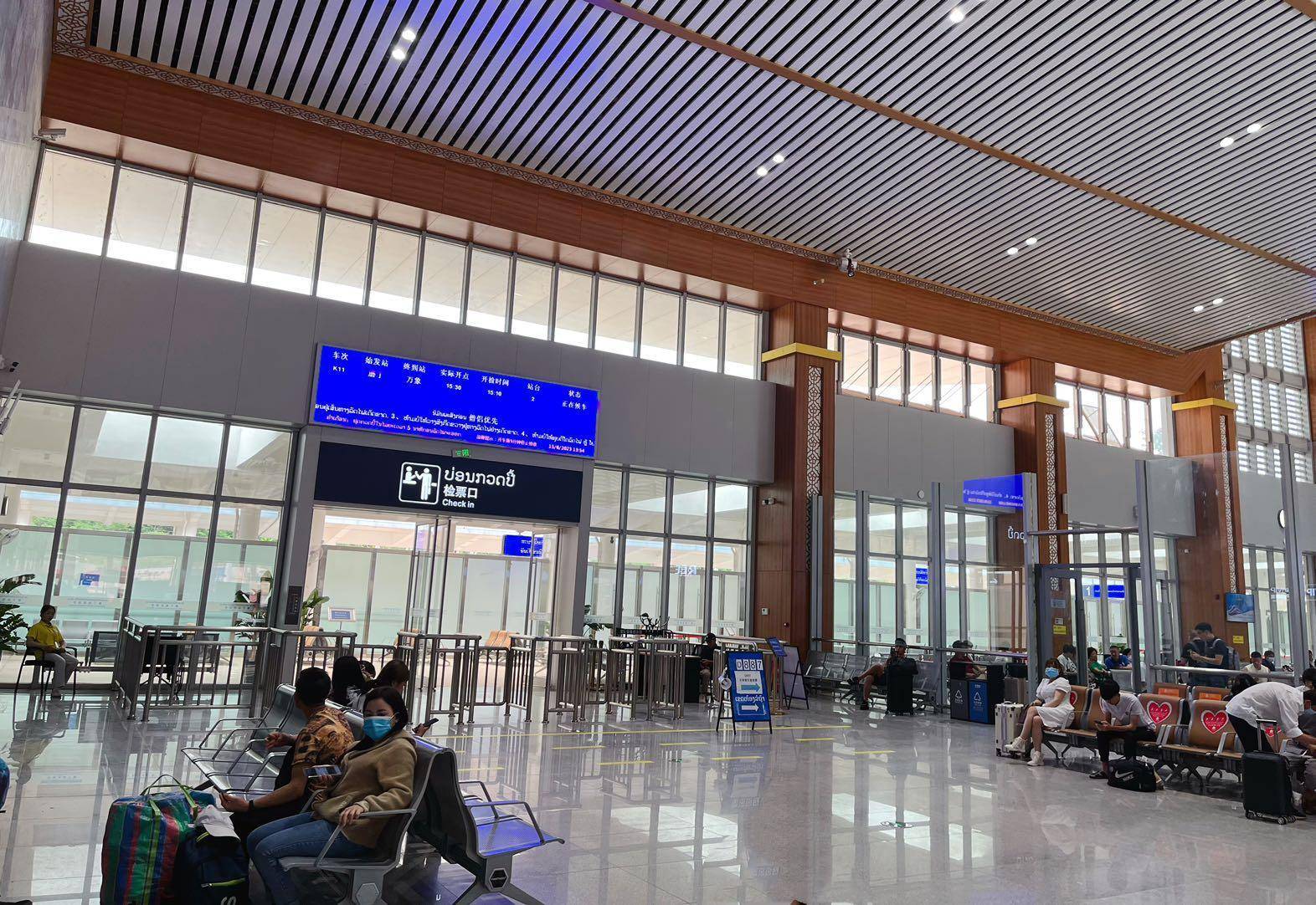中午乘澜沧一号。开往老挝的D动车组,这是首列走向国际市场的动车组。整个项目由我们投资建设,列车工作人员会说中文。从西双版纳到磨憨站,需下车办理出境手续,领取进门卡。等待时间约为1个半小时。