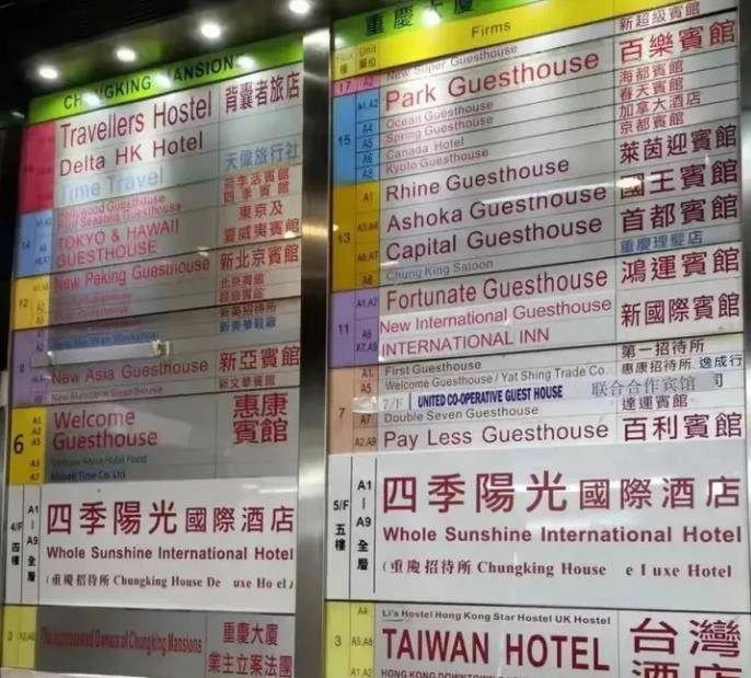 重庆大厦的一楼到三楼都有商店,而且是完全正常的商店。然后4楼到17楼有不同的酒店。如果您选择我们人经营的酒店,您不会感觉到与其他地方的酒店有什么不同。