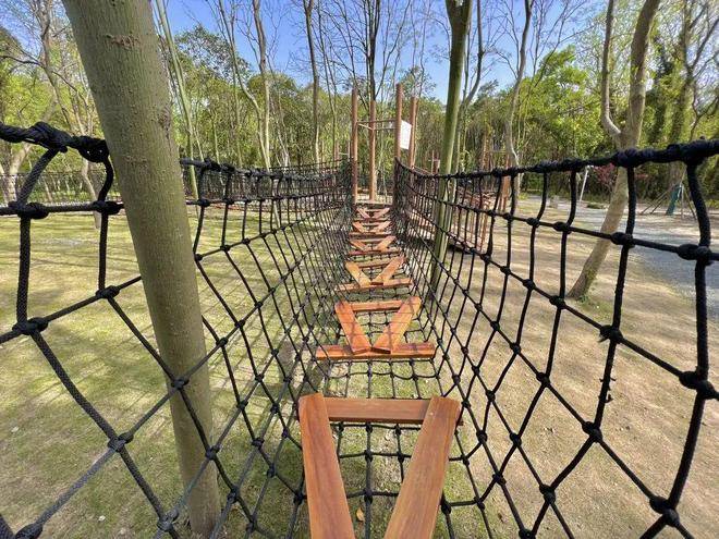 森林小道别出心裁,人工风景小品引人入胜,炎炎夏日,这里绿荫成趣。拓展营地里的户外拓展活动设施,为大小朋友营造了一方运动天地。