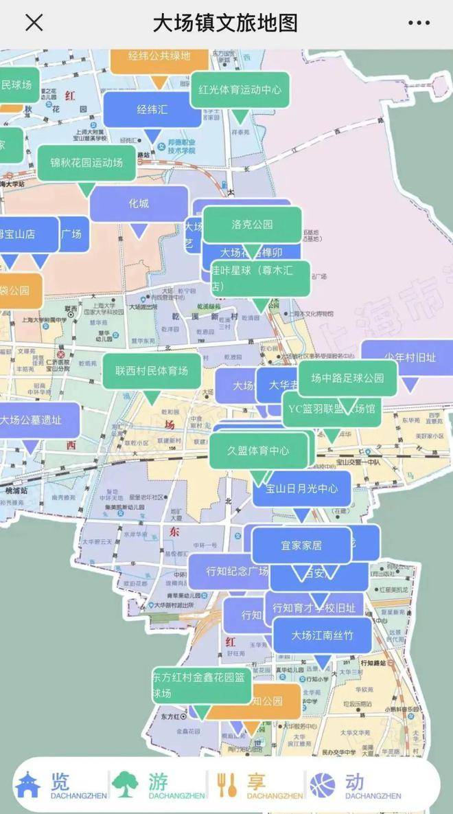 清时曾为上海北郊四大名镇之一的大场镇,素有“铁大场”之美誉,是宝山的“南大门”。“行在大场、知其万象”文旅地图以Chang·游、Chang·览、Chang·享、Chang·动四大板块,串联起多个文体旅点,打造15分钟文体旅社区生活圈。