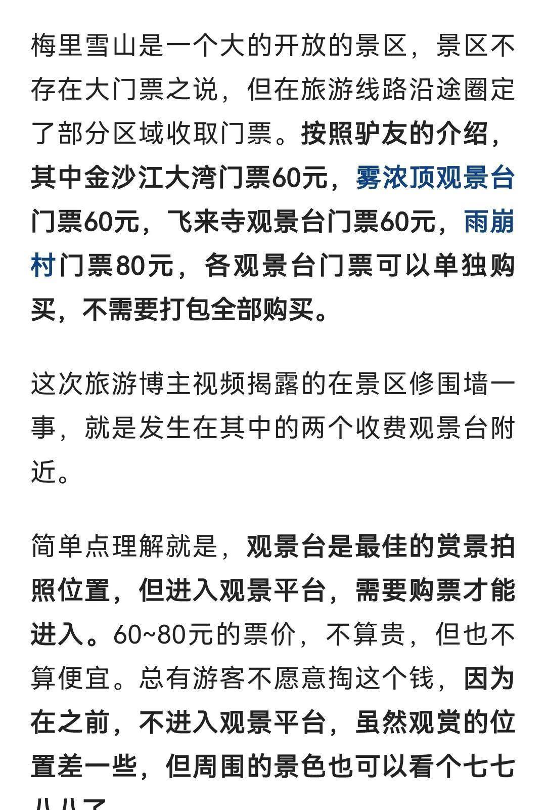 梅里雪山门口不卖门票,但60以上每个景点单独收费。