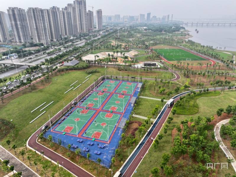 航拍南昌县赣江昌南外滩公园(央广网发 李悭 摄)