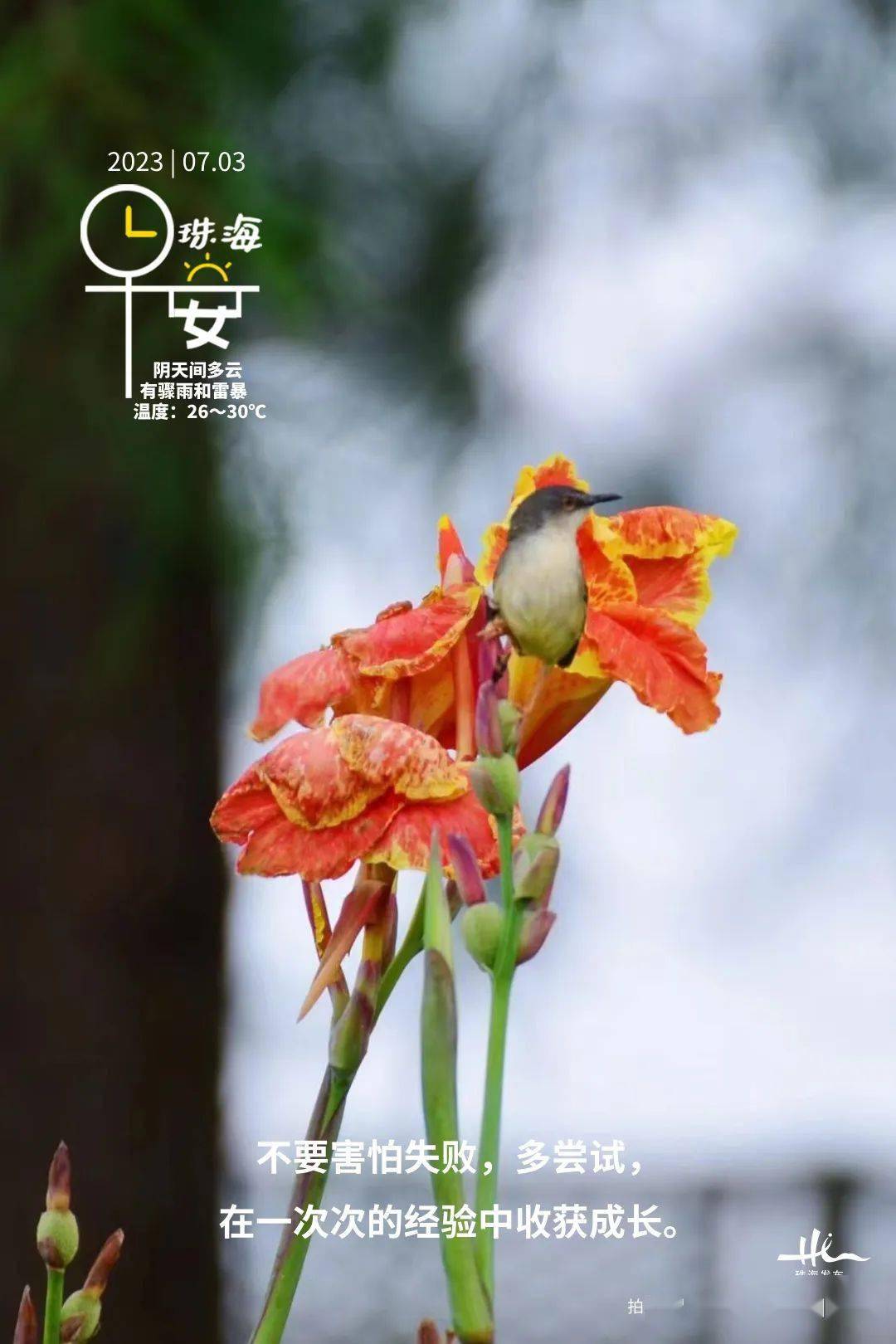 市气象台预计,今明两天我市持续有雷雨,雨势有时较大。7月5日-7日,降雨减弱,天气炎热,最高温将超34℃。