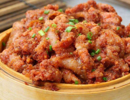 4、粉蒸肉:提起粉蒸肉,相信也是大多数的最爱了。一碟冒着热气的粉蒸肉,绝对是深夜慰问灵魂的最佳选择。入口油香,绵软适口,不要太过瘾。重要的是这道饭菜,肉的量也比较大,肉的口感很好,麻味很到位。喜欢肥腻一点的还可以加些肥油,另外配着饼子吃基本上就可以搞定一顿饭了。假如给你一双筷子,这种美食你会选吗?