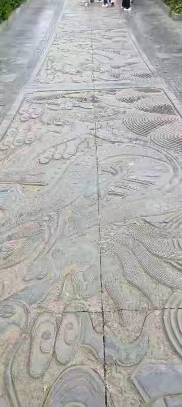 这一段的地面是白岗石雕刻成的“九龙璧”。