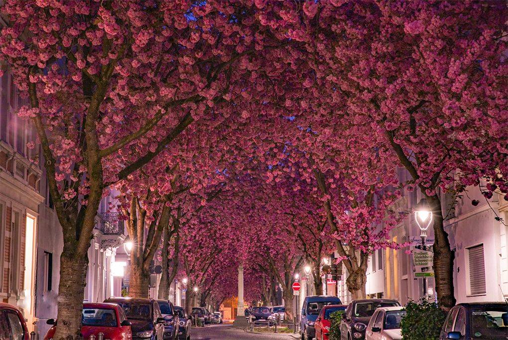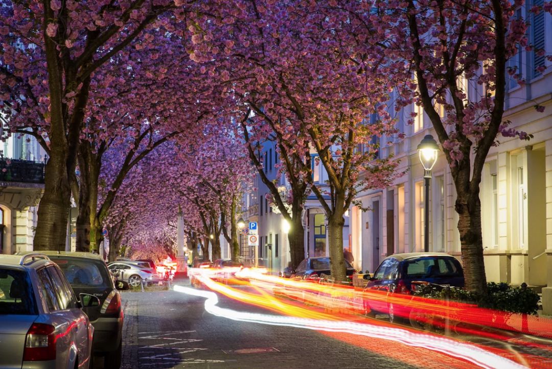 传说中的樱花隧道就坐落在波恩老城区。一整条街道都种植着晚樱,浪漫的粉红色的街道成为整座城市最浪漫的地方。