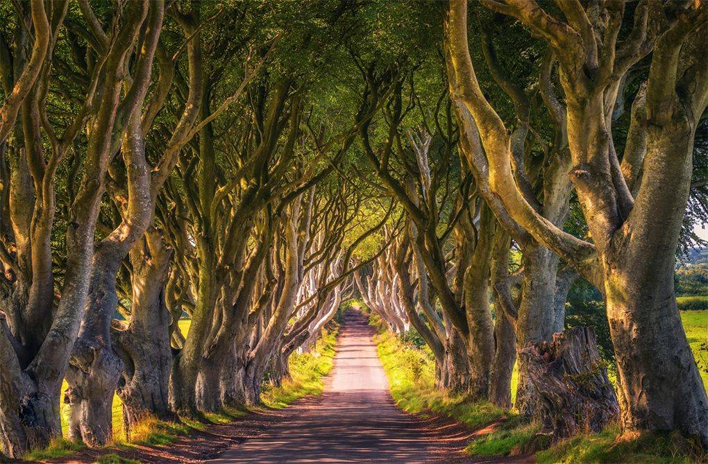 北爱尔兰小村庄埃尔默附近有一条名为「黑暗树篱」(Dark Hedges)的小路,路两侧山毛榉树林立,它们盘根错节,蔚然成荫,使得整条道路深邃成一条童话风景。刚刚完结的《权利的游戏》中也有几处在此取景。